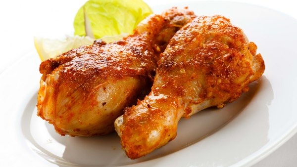 - Heat oil in cooking pan; put chicken in oil and stir fry till yogurt water evaporates and oil comes on top.
